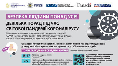 Постери нагадують громадянам, що карантин та соціальне дистанціювання може призвести до погіршення ситуації з домашнім насильством. Вони також закликають до пильності, щоб не стати жертвою кіберзлочинності, та попереджають про те, що торгівці людьми можуть скористатися економічною скрутою в часи кризи. В матеріалах наводяться посилання на ресурси, якими широкий загал може скористатися для отримання інформацію про правила безпеки та допомоги. Електронну версію постерів можна завантажити тут: https://www.osce.org/uk/project-coordinator-in-ukraine/450223.