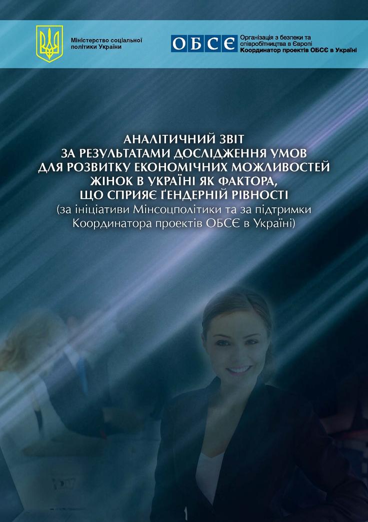 Обкладинка публікації "Аналітичний звіт за результатами дослідження умов для розвитку економічних можливостей жінок в Україні як фактора, що сприяє ґендерній рівності"