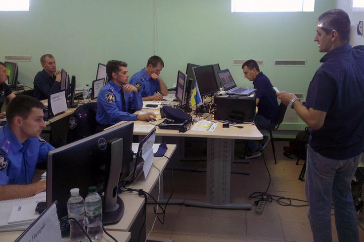An international expert Ljuban Petrovic from Serbia provides insights into cybercrime investigation to Ukrainian police officers at a training organized by the OSCE Project Co-ordinator in Kyiv, 14 June 2014.