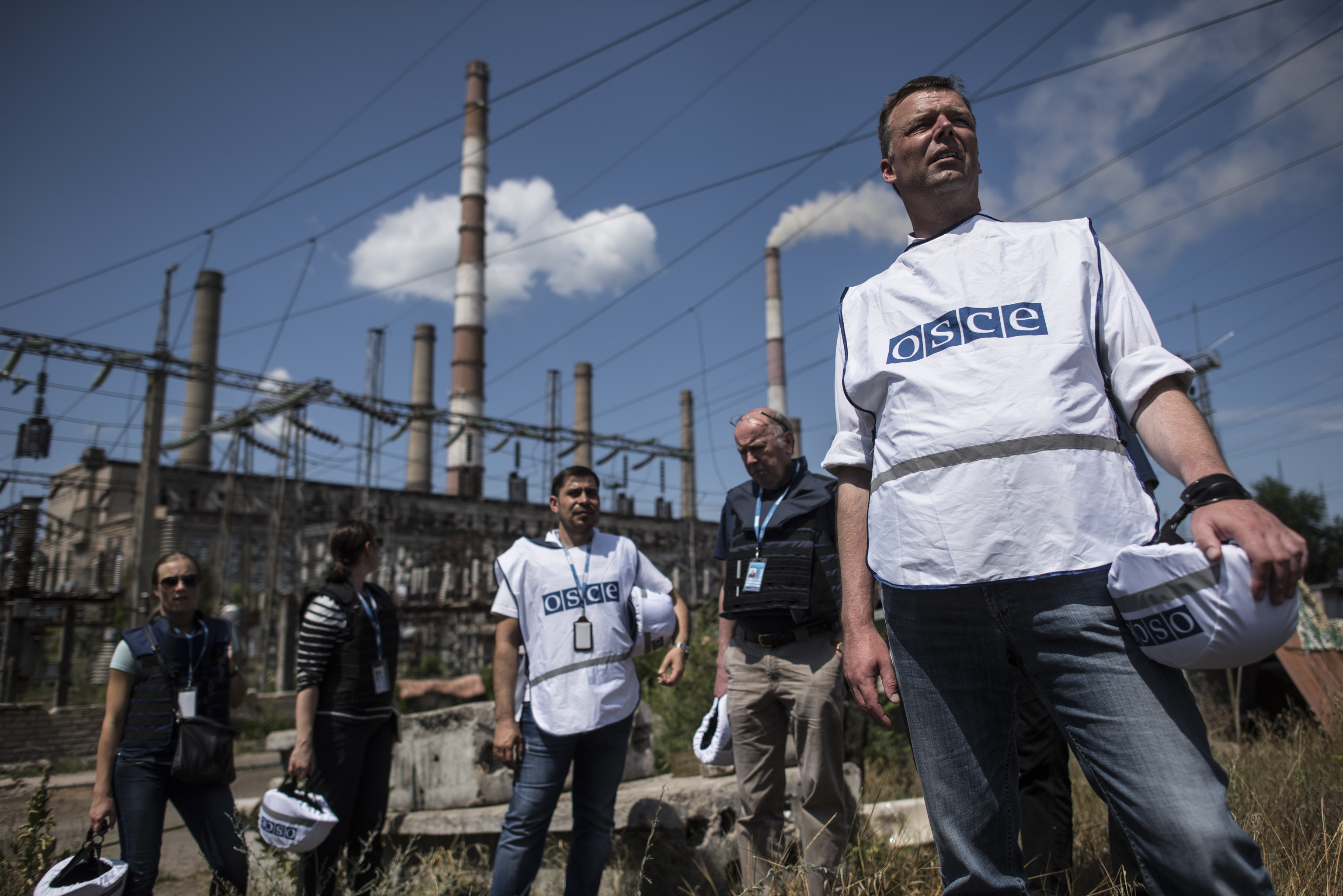 Alexander Hug (r), Deputy Chief Monitor of the OSCE Special Monitoring Mission in Ukraine, Luhansk region, 6 July 2015.