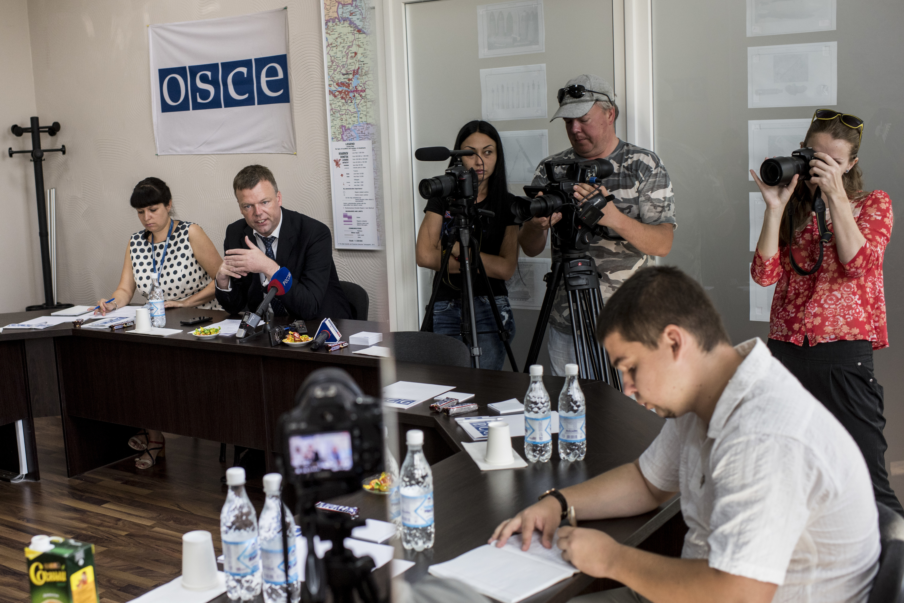 Alexander Hug, Deputy Chief Monitor of the OSCE Special Monitoring Mission to Ukraine during a news briefing in Luhansk region, 6 July 2015.