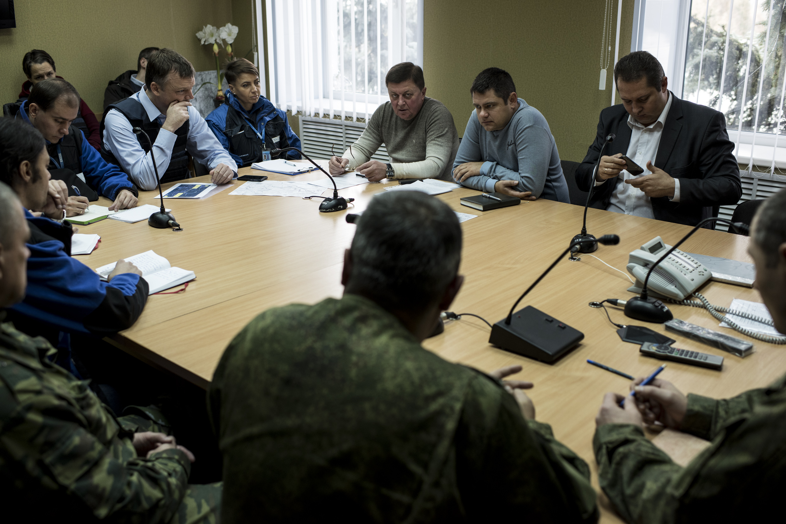 OSCE SMM Deputy Chief Monitor meeting interlocutors in order to facilitate the restoration of power lines between Artemove and Horlivka, 25 October 2015.