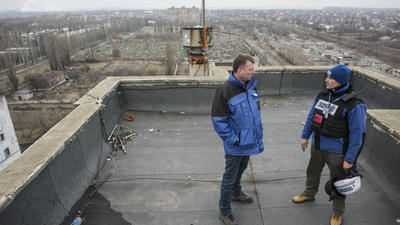 Hug subsequently went to the remains of the airport to inspect two sites that could serve as an observation post and also host stationary cameras for the SMM. The two cameras, one at the “DPR”-held Oktyabrsky Mine, the other in government-controlled Avdiivka, will allow the Mission to observe the area around the site of the Donetsk airport - one of the tensest locations in eastern Ukraine – around-the-clock and in a 360 degree-radius, thereby greatly enhancing the Mission’s monitoring capacity.