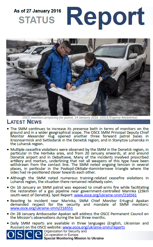 Cover for Status Report as of 27 January 2016