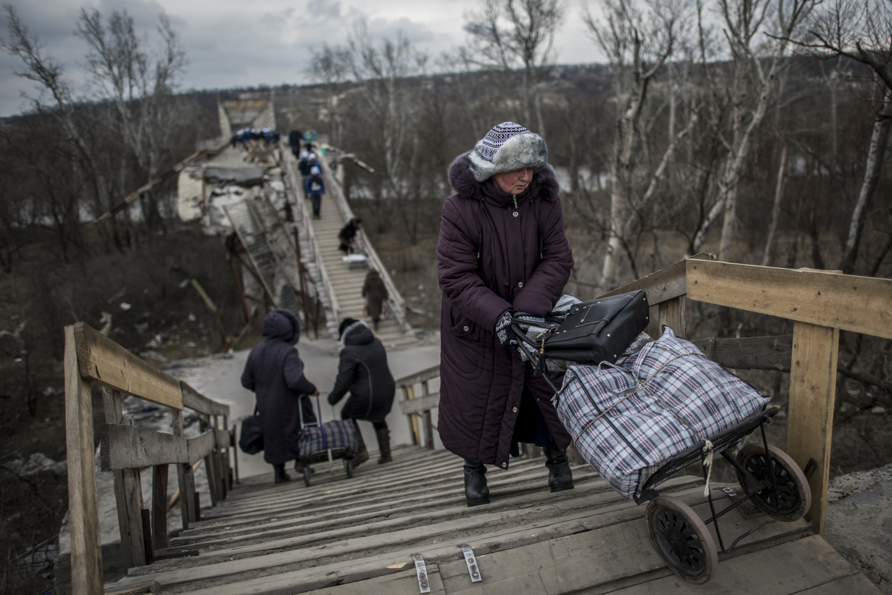 At the destroyed bridge in Stanytsia Luhanska, SMM monitors saw large numbers of elderly men and women, among them many with walking difficulties, crossing with great difficulty and danger to themselves.
