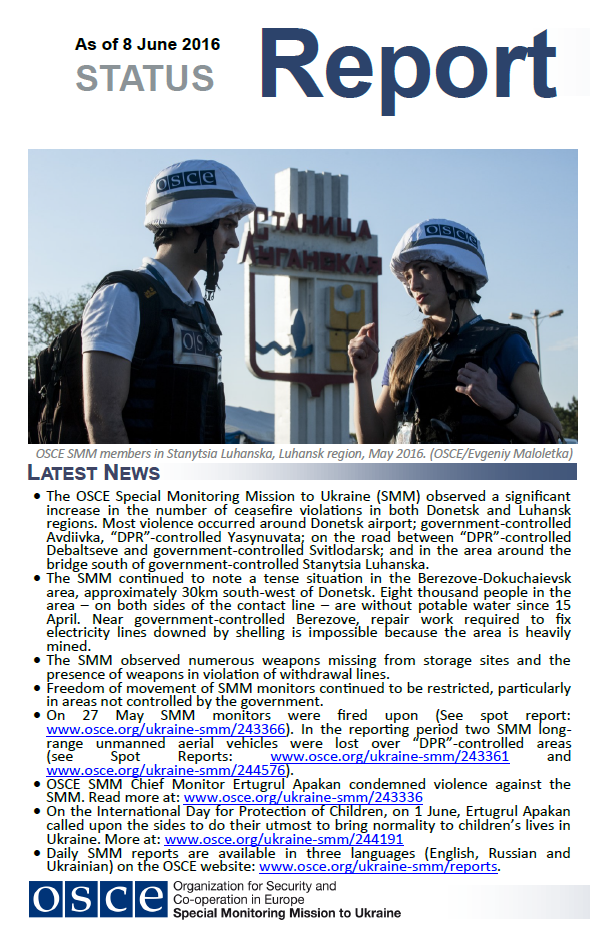 Cover for Status Report as of 8 June 2016