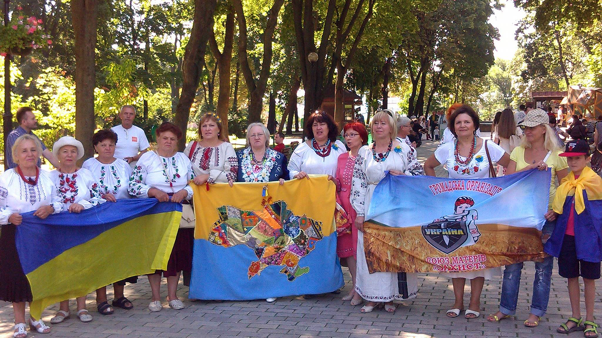 Nadiya Kuramshina, founder of the Unity of Mothers “Zakhyst” (Defence) NGO, stands with other women whose sons serve in Armed Forces and formations.