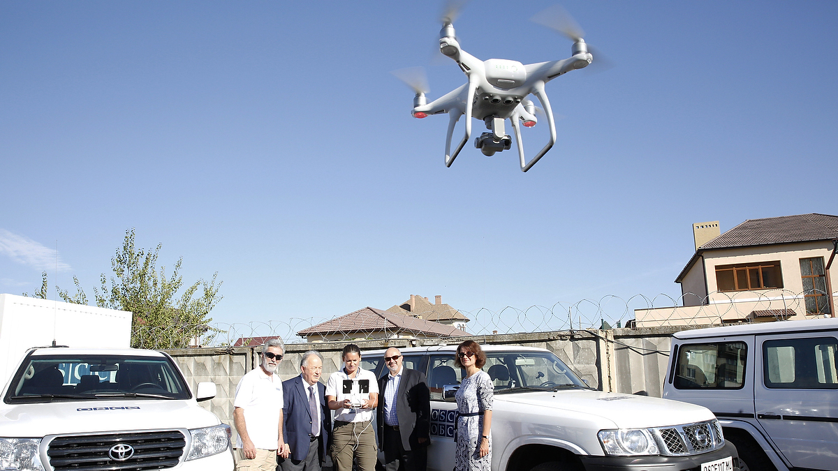 The OSCE Secretary General, Ambassador Lamberto Zannier, and OSCE SMM Chief Monitor, Ambassador Ertugrul Apakan visit the Kramatorsk Hub on 8 September 2016.