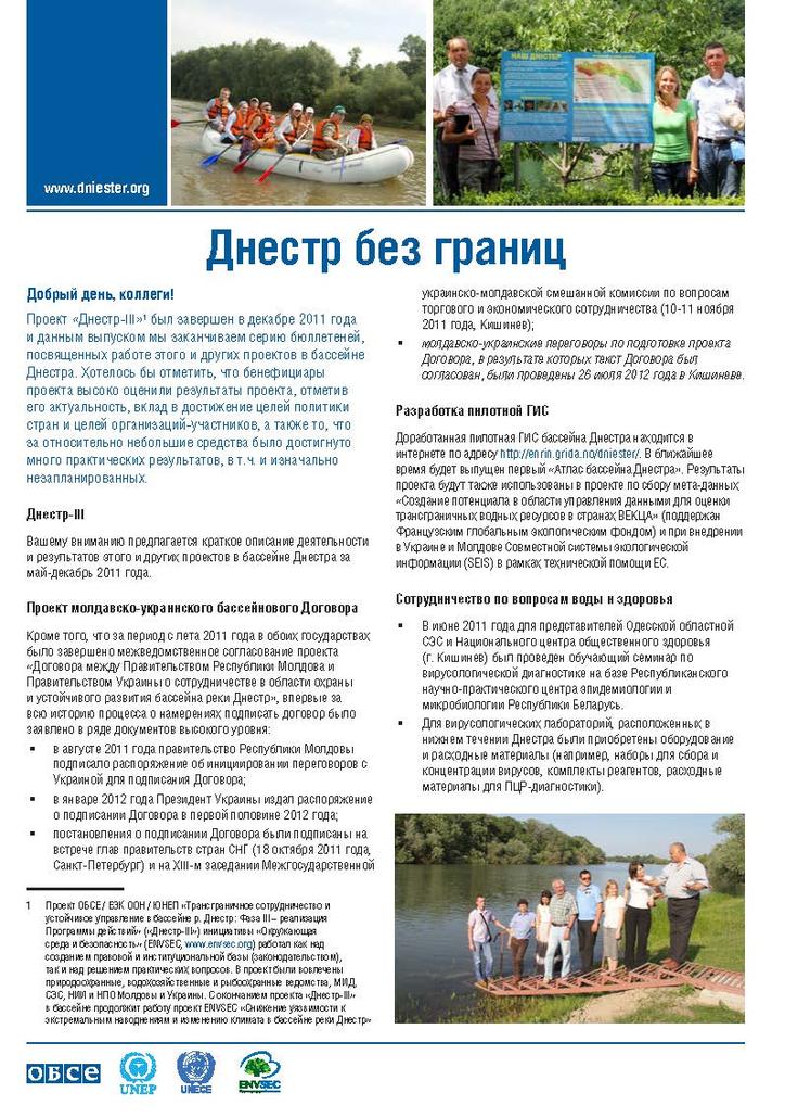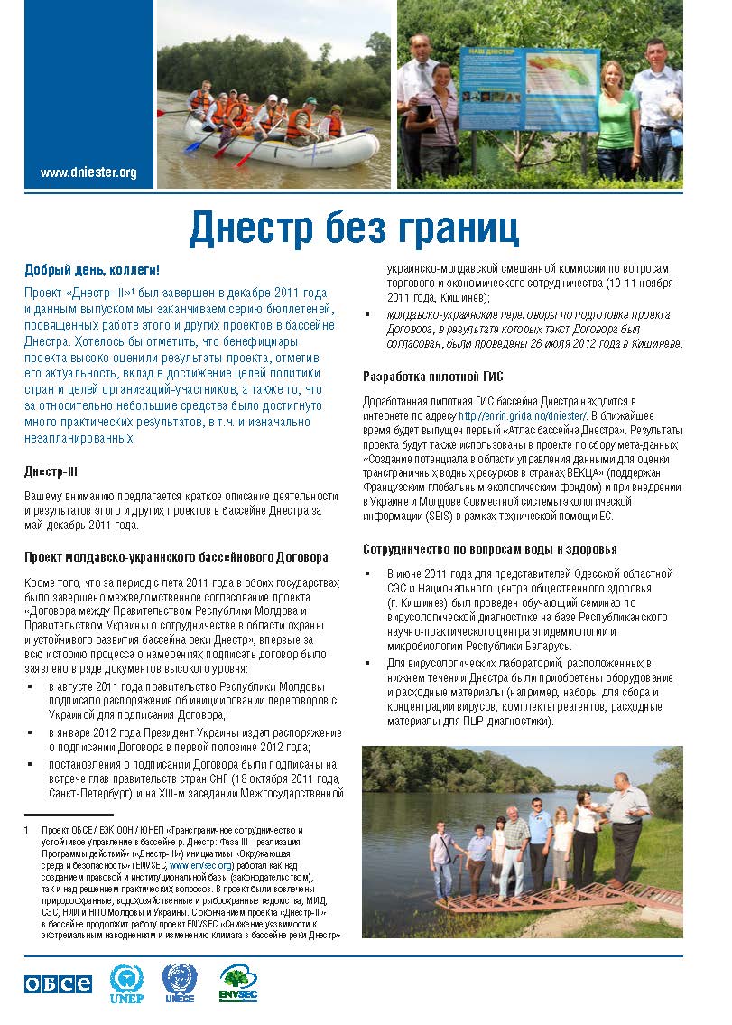 Factsheet "Dniester without Borders" No. 3. Available only in Russian.