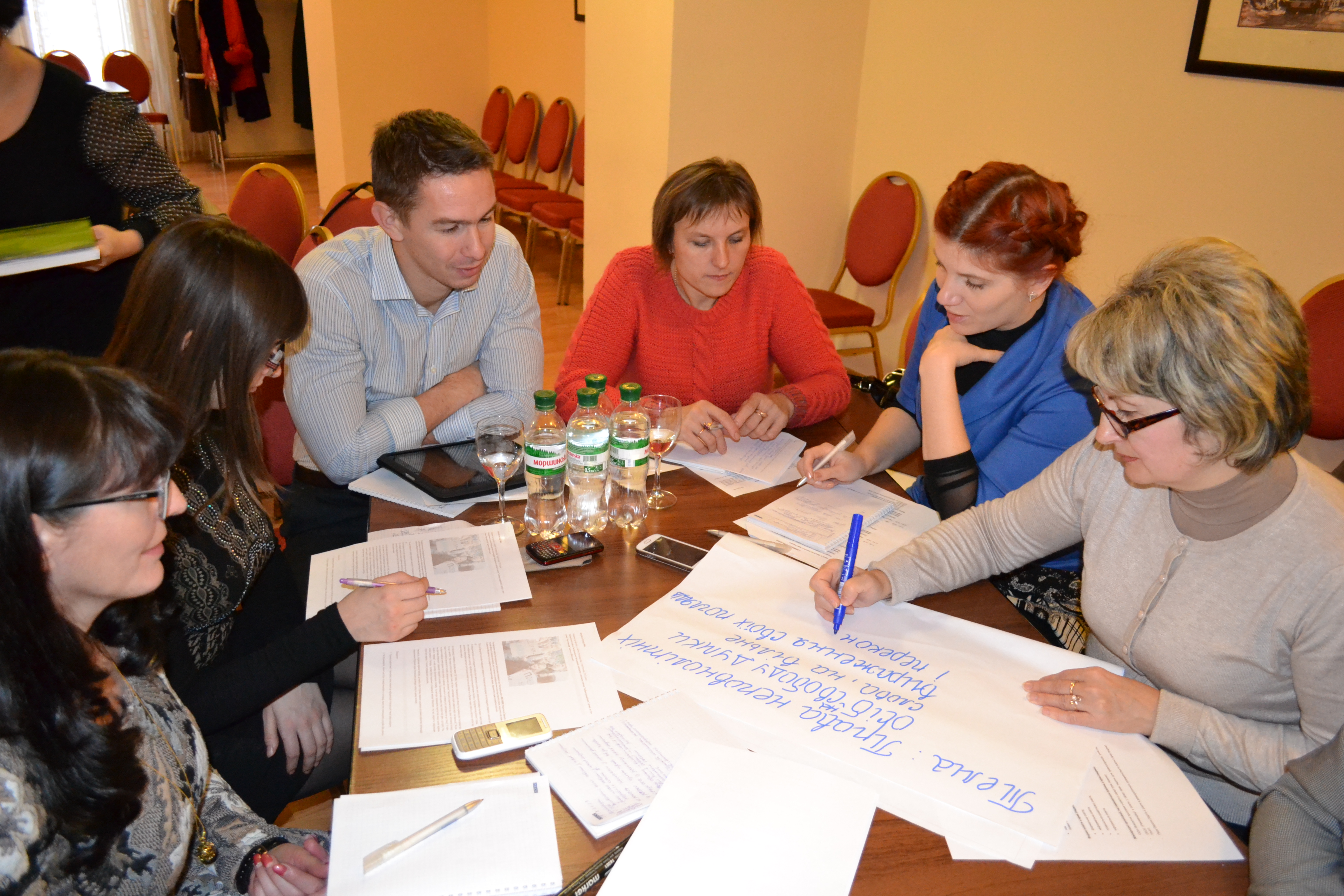 Teachers working in groups to solve practical tasks at a training session on how to introduce human rights to Ukrainian schoolchildren. The session was organized in Lviv by the OSCE Project Co-ordinator in Ukraine on 6-8 of December 2013.
