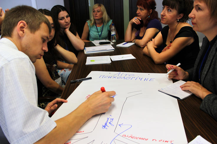 Ukrainian social service providers master technics of correctional assistance to perpetrators of domestic violence at a training organised by the OSCE Project Co-ordinator in Lviv on 1-2 July 2014.
