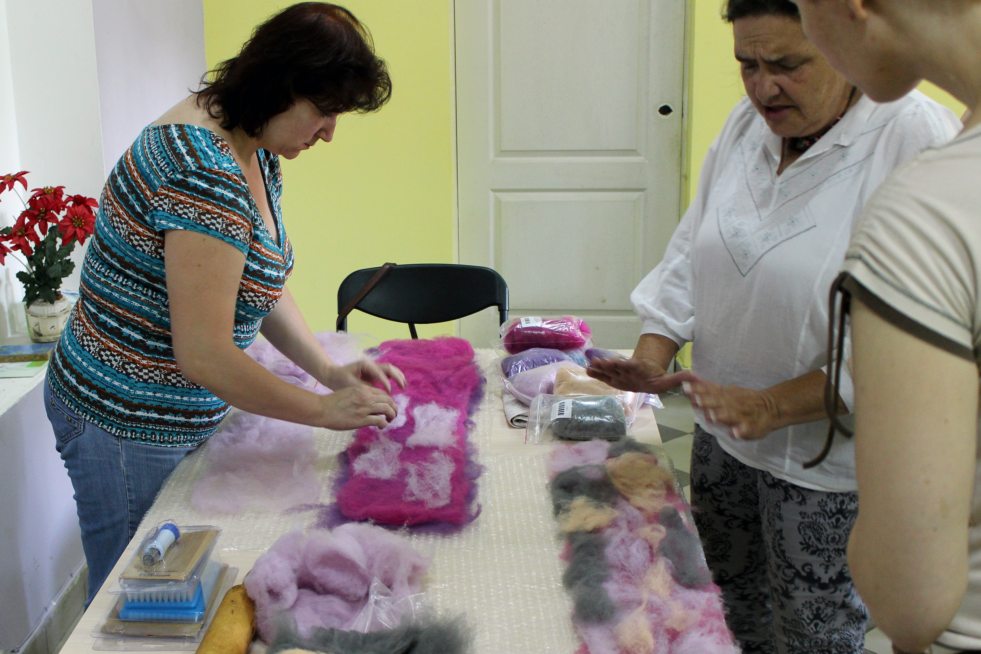 Women at-risk of human trafficking, including seven internally displaced persons, at the training in felting organized as part of the first social enterprise to prevent human trafficking, Lviv, 22 July 2015.