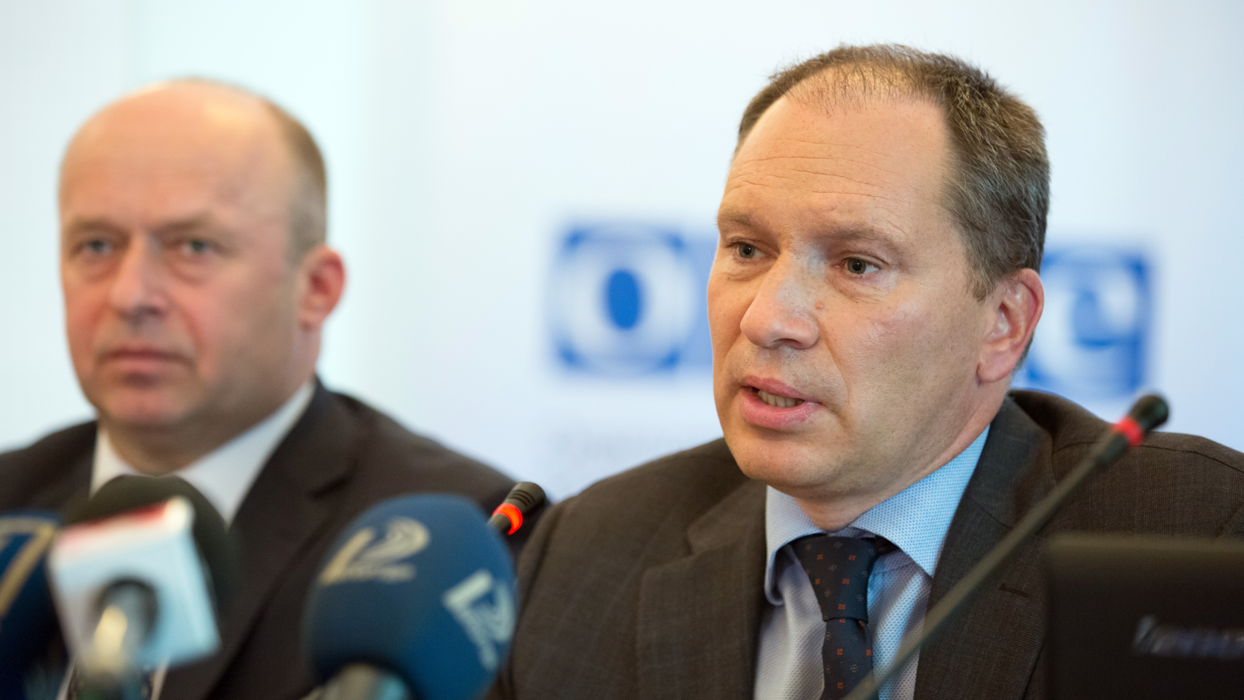 Ambassador Vaidotas Verba (r), the OSCE Project Co-ordinator in Ukraine, emphasizes the importance of the role of responsible journalism in the elections period, Odesa, 28 September 2015.