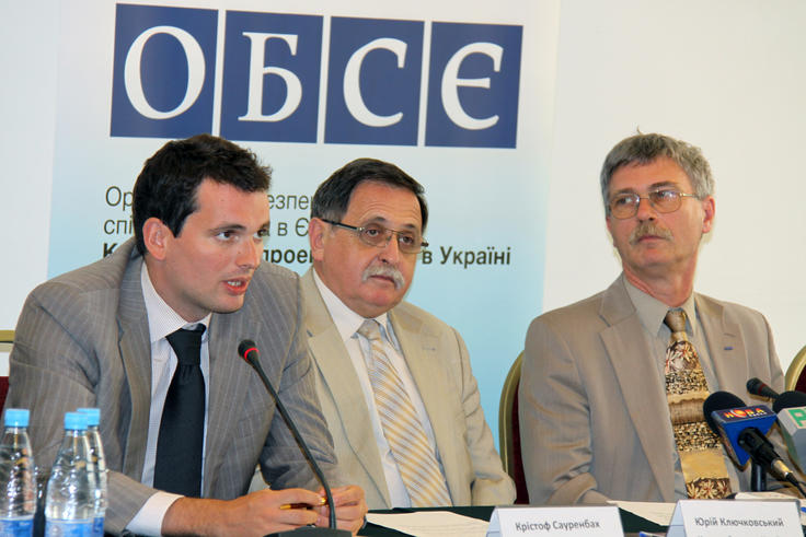 L-r: Christoph Saurenbach, EU Delegation to Ukraine, Yuriy Klyuchkovsky, member of the Parliament of Ukraine and Lubomir Kopaj, OSCE Project Co-ordinator in Ukraine at a discussion on local elections legislation in Odessa on 23-24 June 2010.