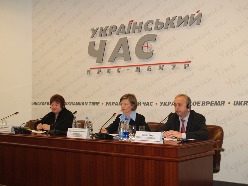 L-r: Raisa Semenets of Ukraine's Ministry for Family, Youth and Sports; Marta Achler-Szelenbaum, legal expert with ODIHR; and Eugen Rusu of the Moldovan Prosecutor General's Office at a meeting on anti-trafficking legislation, Kyiv, 23 April 2007.