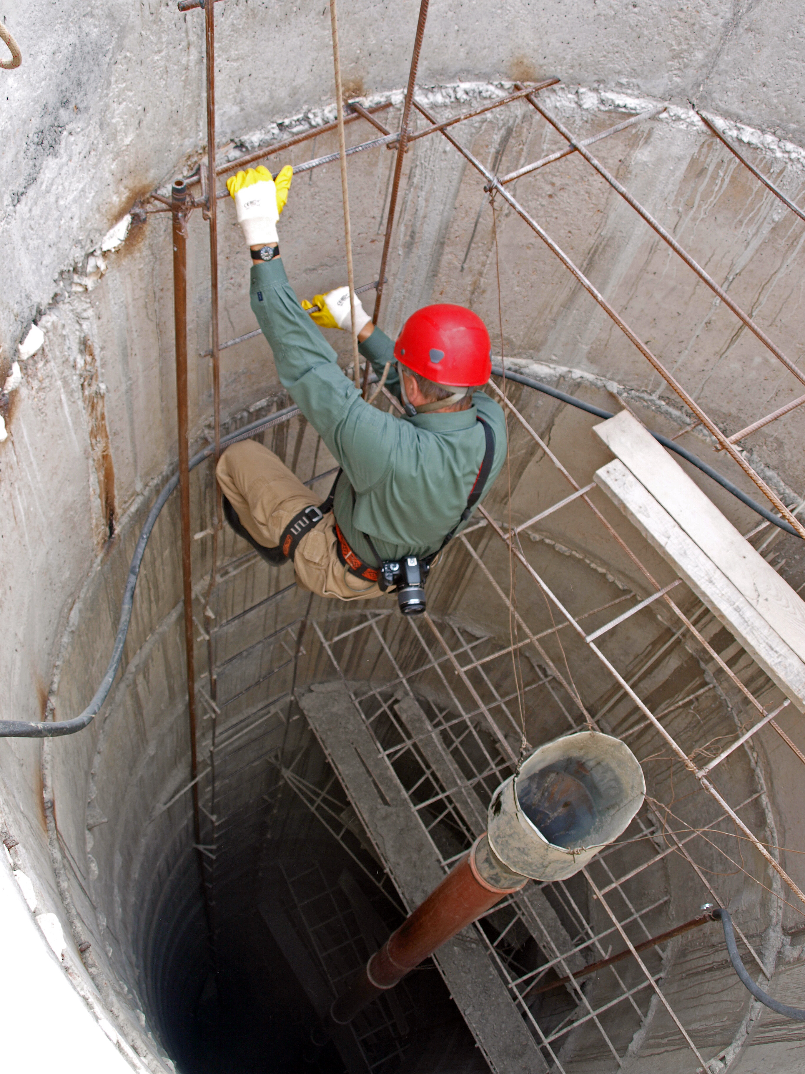 Descending into the destroyed Inkerman cave, Sevastopol, Crimea, September 2009.
