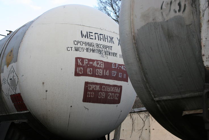 Railroad cisterns loaded with melange, ready to depart the military base in Bila Tserkva, 16 November 2011.