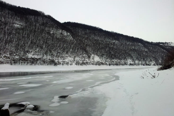 A section of the Ukrainian part of the the Dniester river basin which conceals two automated water level monitoring stations underwater. The stations were launched with OSCE support on 17 December 2012.