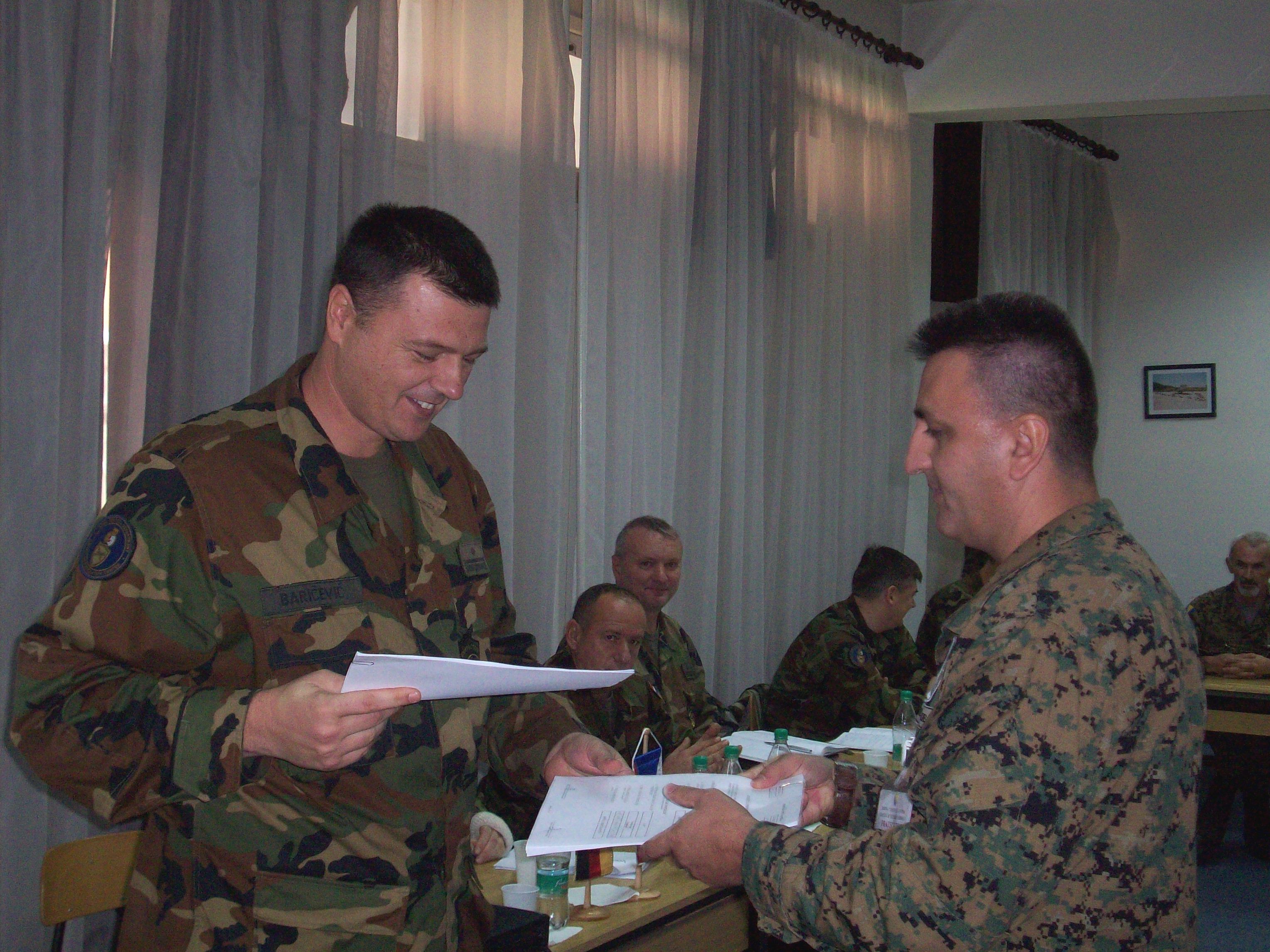 Signed agreements are exchanged during the 300th mission and 600th inspection under the Dayton Agreement on Sub-Regional Arms Control, which were carried out by Croatia in Bosnia and Herzegovina, from 22-28 September 2008.