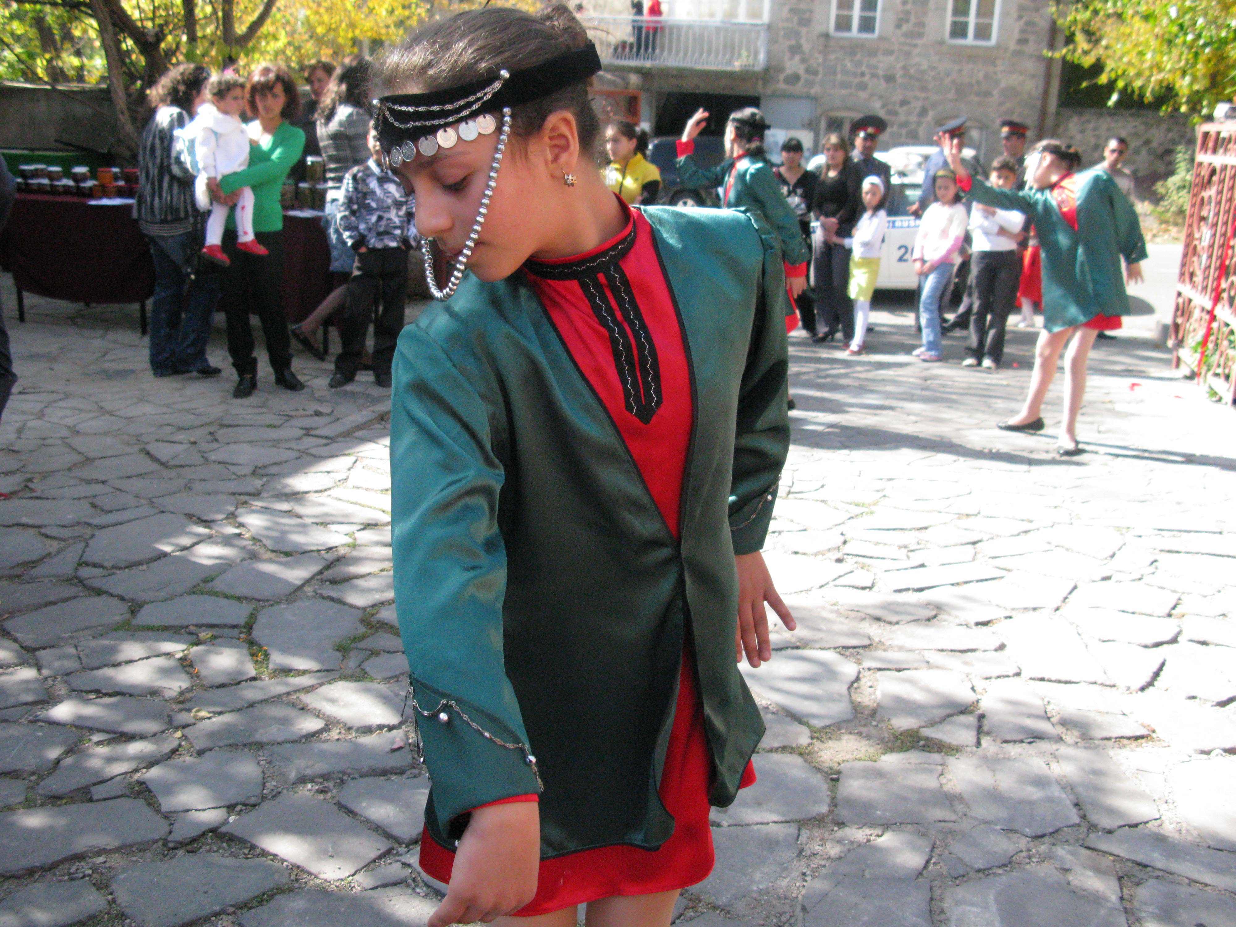 A girl dances at an arts and craft fair in Goris, Armenia that aims to enhance female entrepreneurs' skills in business and tourism, 17 October 2009.
