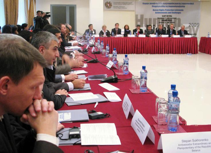 Participants at a high-level roundtable on human rights in Armenia, Yerevan, 10 December 2009.