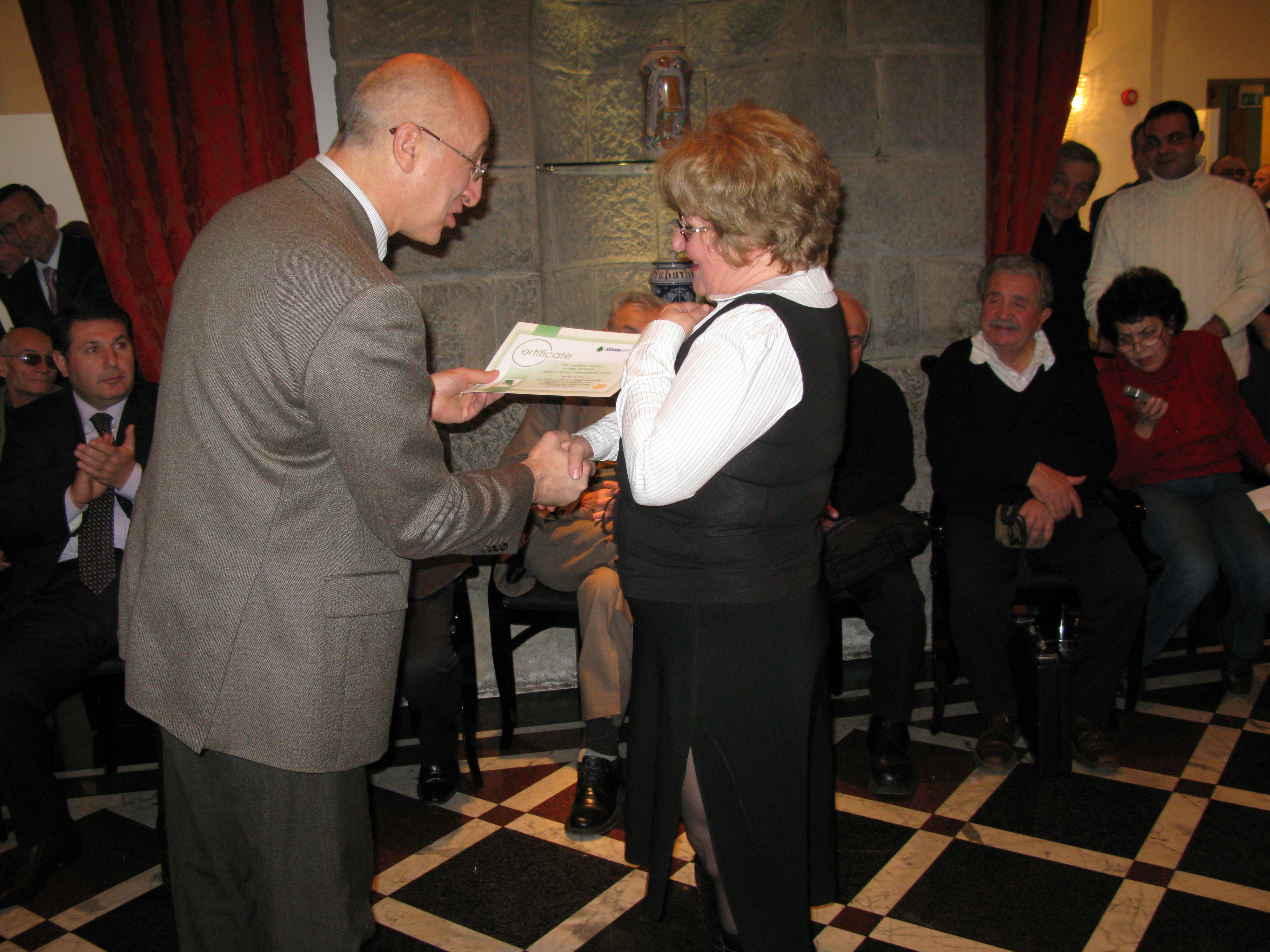Ambassador Sergey Kapinos, Head of the OSCE Office in Yerevan, awards a certificate for raising environmental awareness to Inga Zarafyan from the NGO Ecolur, Yerevan, 22 December 2009.