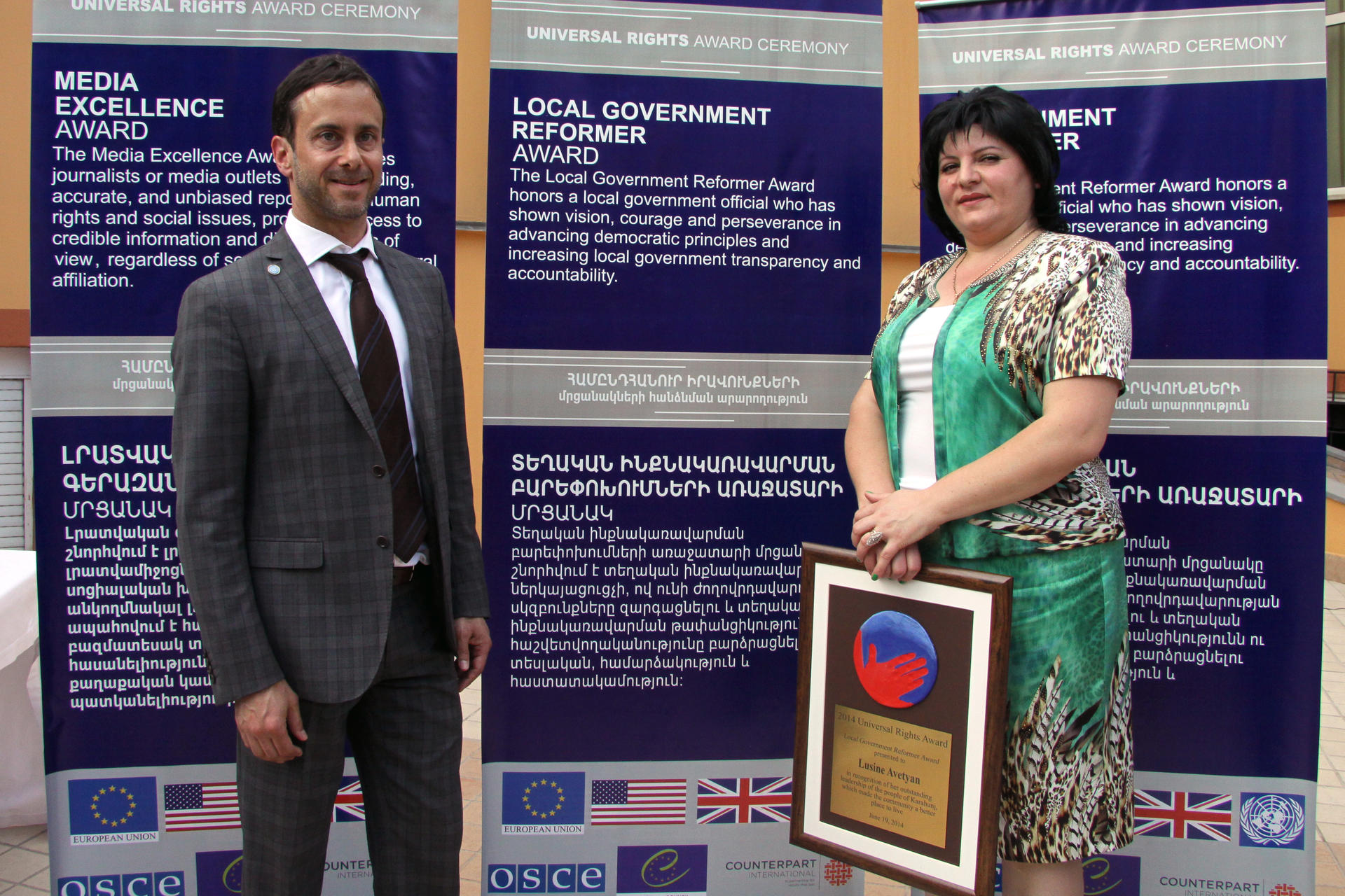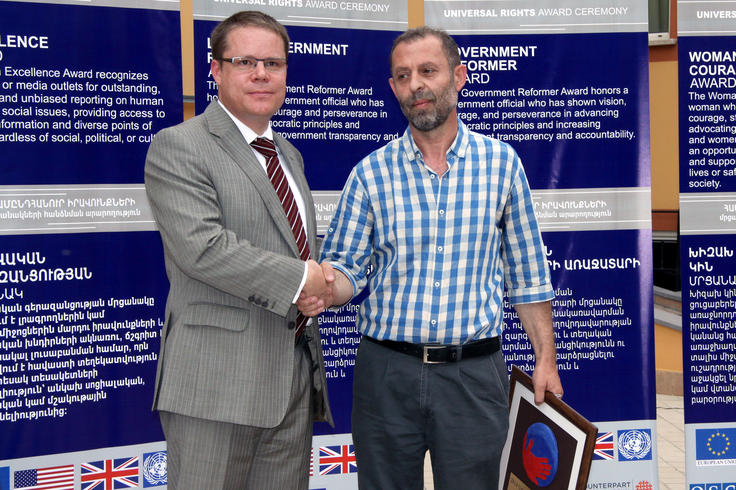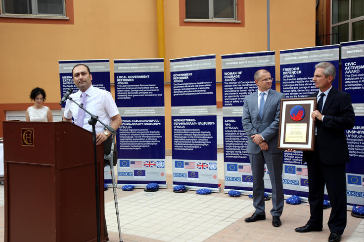 On 19 June, the OSCE and international partners honoured individuals working to promote human rights, accountable governance, civic activism, local government reform, community service and free speech in Armenia at the Universal Rights Awards Ceremony at the Congress Hotel in Yerevan.
