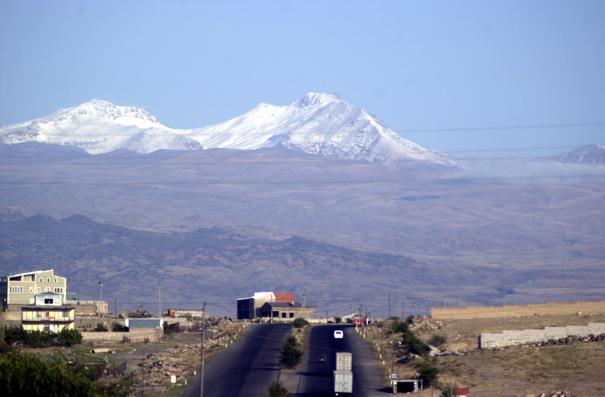 A view of Mount Aragats on the way from Yerevan, Armenia's capital, to Vanadzor, the country's third-largest city. Gyumri is the second largest city.
