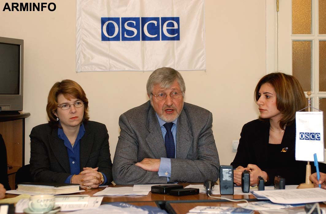 Head of OSCE Office in Yerevan, Ambassador Roy Reeve, summarizes the 2002 activities of the office at a press conference, 10 December 2002.