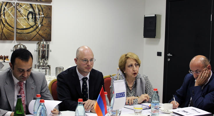 Participants during a roundtable discussion on the economic integration of migrants in Armenia, organized by the OSCE Office in Yerevan in close co-operation with the Armenian Ministry of Labour and Social Affairs, 3 June 2016.