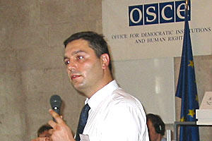 Nikolay Aroustamyan, Head of Legal and Judicial Reform at the Ministry of Justice, introduced the Armenian penitentiary situation during an OSCE workshop in security management, 27-29 May 2003.