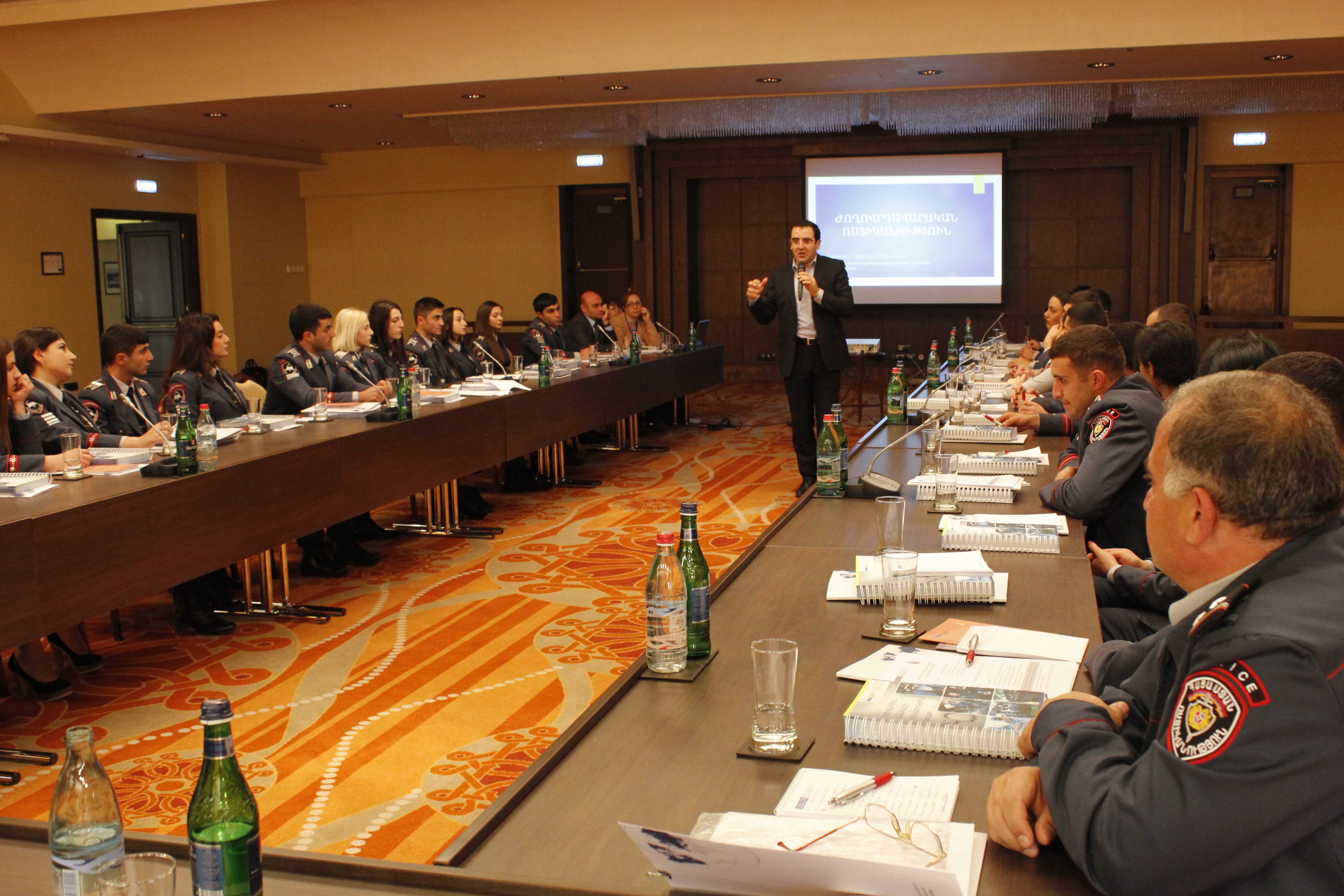 The Chairman of the National Centre for Legal Researches NGO conducting a course on democratic police at the OSCE-supported training in Tsaghkadzor, Armenia, 31 October 2016.