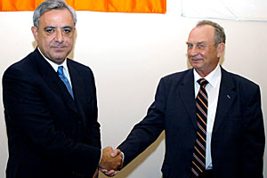 Ambassador Vladimir Pryakhin (right), Head of the OSCE Office in Yerevan, and Armenian Foreign Minister, Vartan Oskanian, at the opening of the new Office's premises, 22 September 2004.