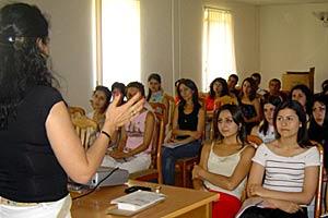 Meline Petrosyan, Senior Democratization Assistant at the OSCE Office in Yerevan, teaches a group of university students from rural areas of Armenia about leadership skills and the OSCE, 18 July 2005.
