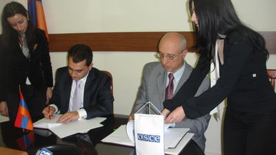 YEREVAN, 4 November 2008 - A memorandum of understanding to establish an Anti-Trafficking Support and Resource Unit was signed today by Ambassador Sergey Kapinos, Head of the OSCE Office in Yerevan, and Arsen Hambardzumyan, the Armenian Minister of Labour and Social Issues.