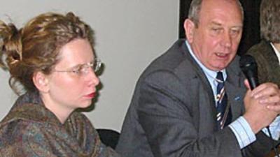 (OSCE)Head of OSCE Office in Yerevan, Vladimir Pryakhin, and Council of Europe Special Representative to Armenia, Natalya Voutova, at a roundtable on draft law on public gatherings and rallies, Yerevan, 22 April 2004. (OSCE) Photo details