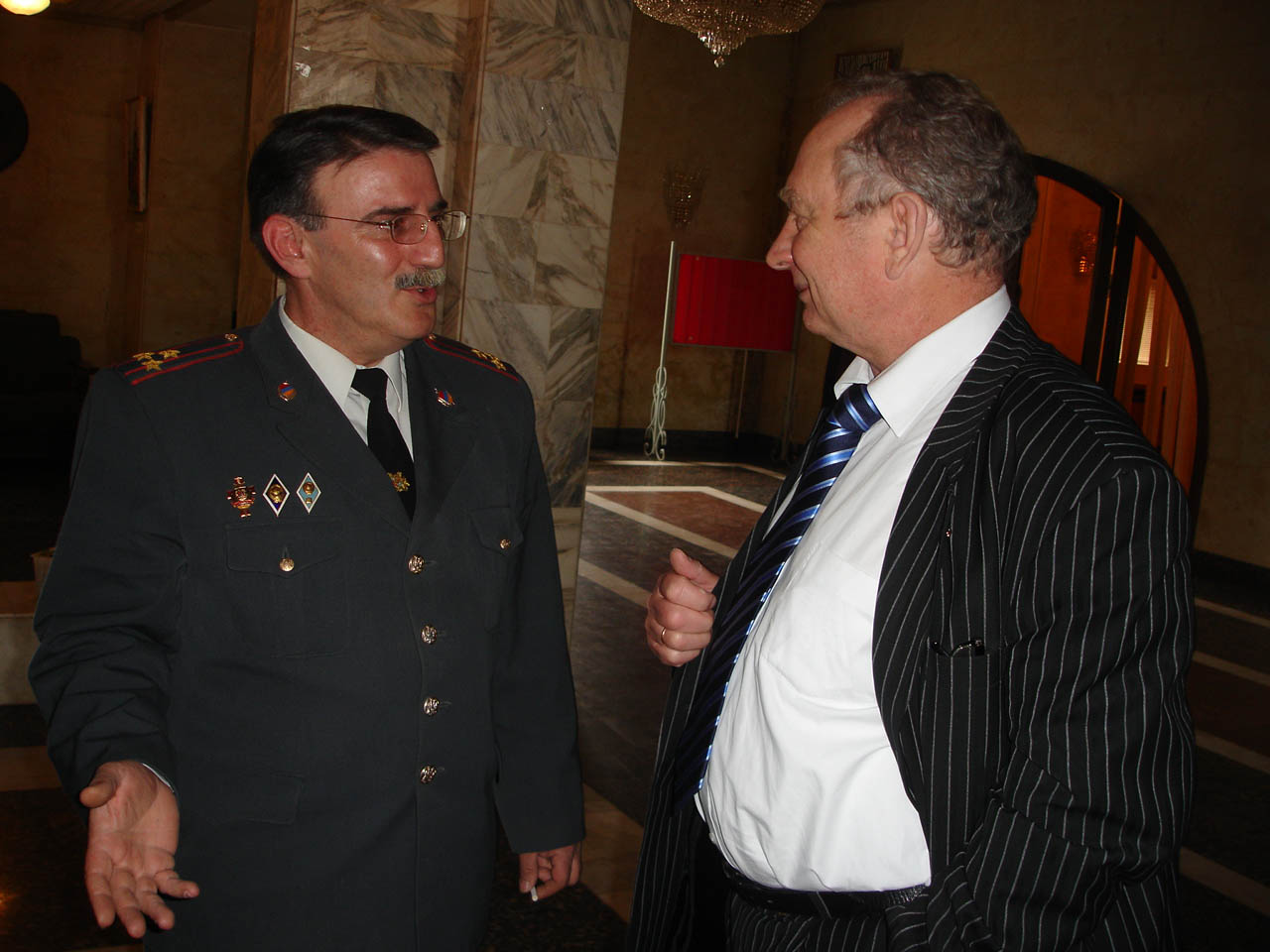 Ambassador Vladimir Pryakhin, Head of the OSCE Office in Yerevan (right) and Karen Mehrabyan, Deputy Head of the Protection of Public Order Department under the Armenian Police at a four-day training course organized by the OSCE, 26 April 2006.