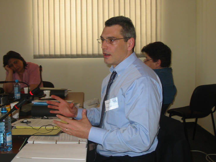 Armenian foreign policy expert Richard Giragossian lecturing at the third annual training programme for parliamentary staff members, Yerevan, 12 June 2006.