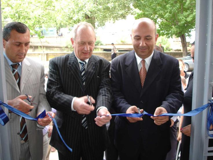 Head of the OSCE Office in Yerevan, Amb. Vladimir Pryakhin (c), Armenian Deputy Foreign Minister, Armen Baibourtian (r) and Governor of Syunik Province, Suren Khachatryan, at the opening of the OSCE Programme Implementation Office in Kapan, 29 June 2006.