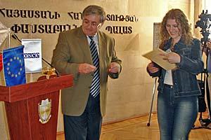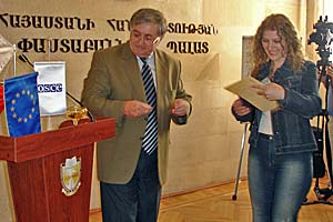 Armenian Chamber of Advocates Chairman Ruben Sahakyan (left) awards certificates to advocates and public defenders who participated in an OSCE-supported training seminar, Yerevan, 19 September 2006.