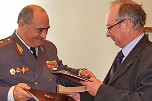 Colonel-General Hayk Harutyunyan (left), the Head of the Armenian Police, and Ambassador Vladimir Pryakhin, the Head of the OSCE Office in Yerevan, after signing an agreement on community policing in Armenia, 20 March 2007.