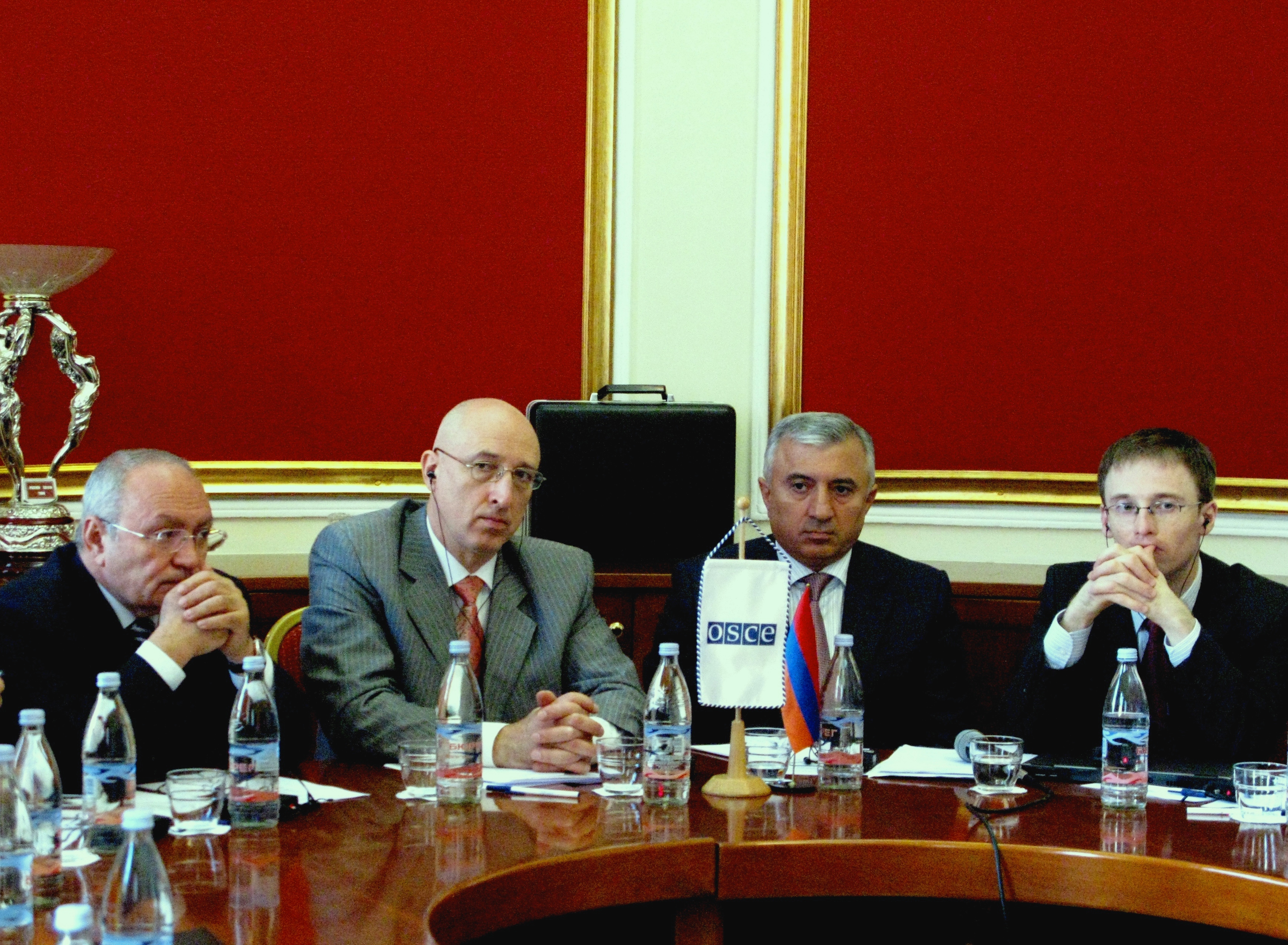 L-r: Armenian Prosecutor General Aghvan Hovsepyan, Head of the OSCE Office in Yerevan Sergey Kapinos, Armenian Justice Minister Gevorg Danielyan and Deputy Chief of OSCE/ODIHR's Rule of Law Unit Vasil Vashchanka, Yerevan, 19 November 2010.