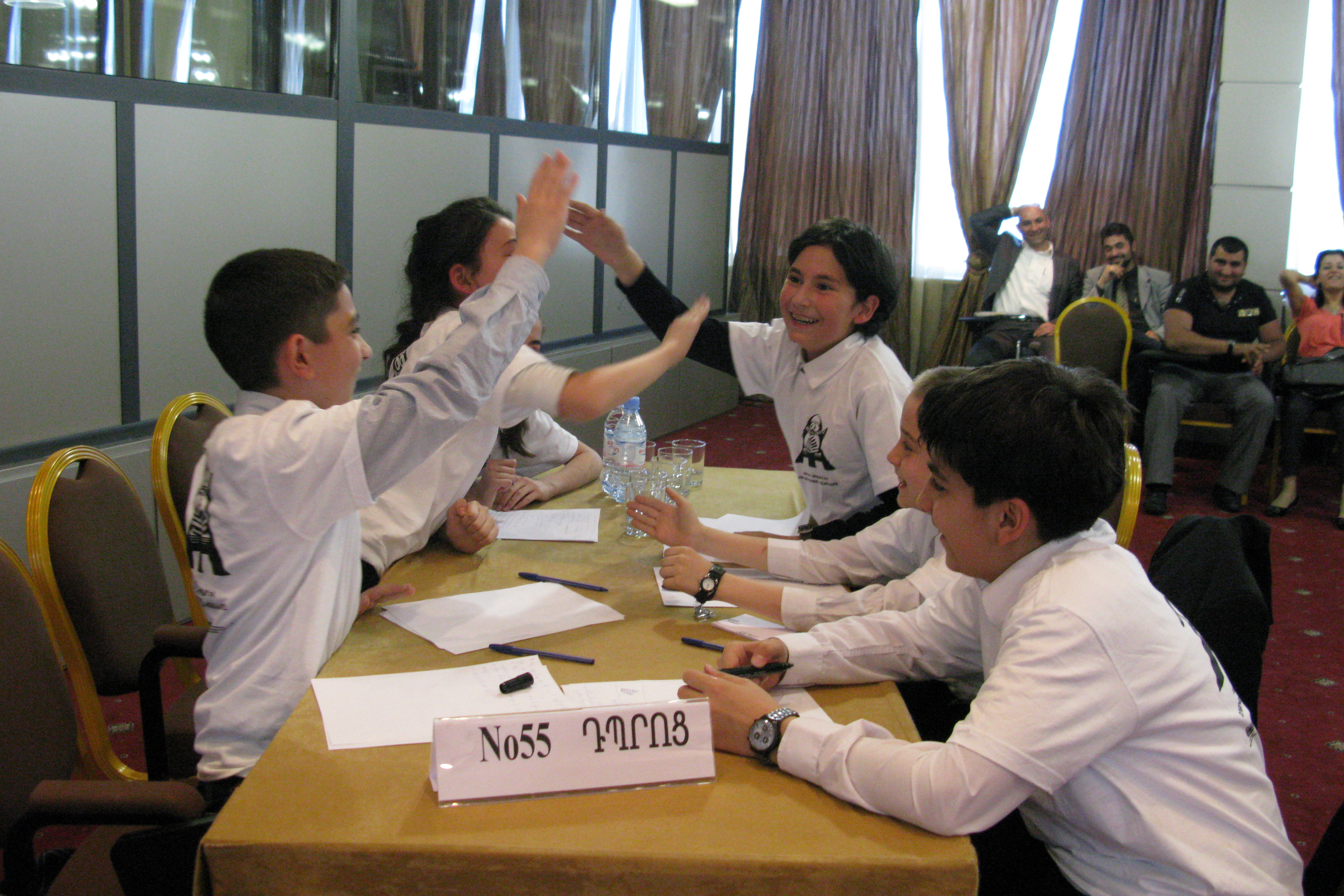 Schoolchildren playing a road safety game during Road Safety Week in Armenia, organized by the OSCE Office in Yerevan, UNDPI Armenia and the National Road Safety Council, Yerevan, 17 May 2011.