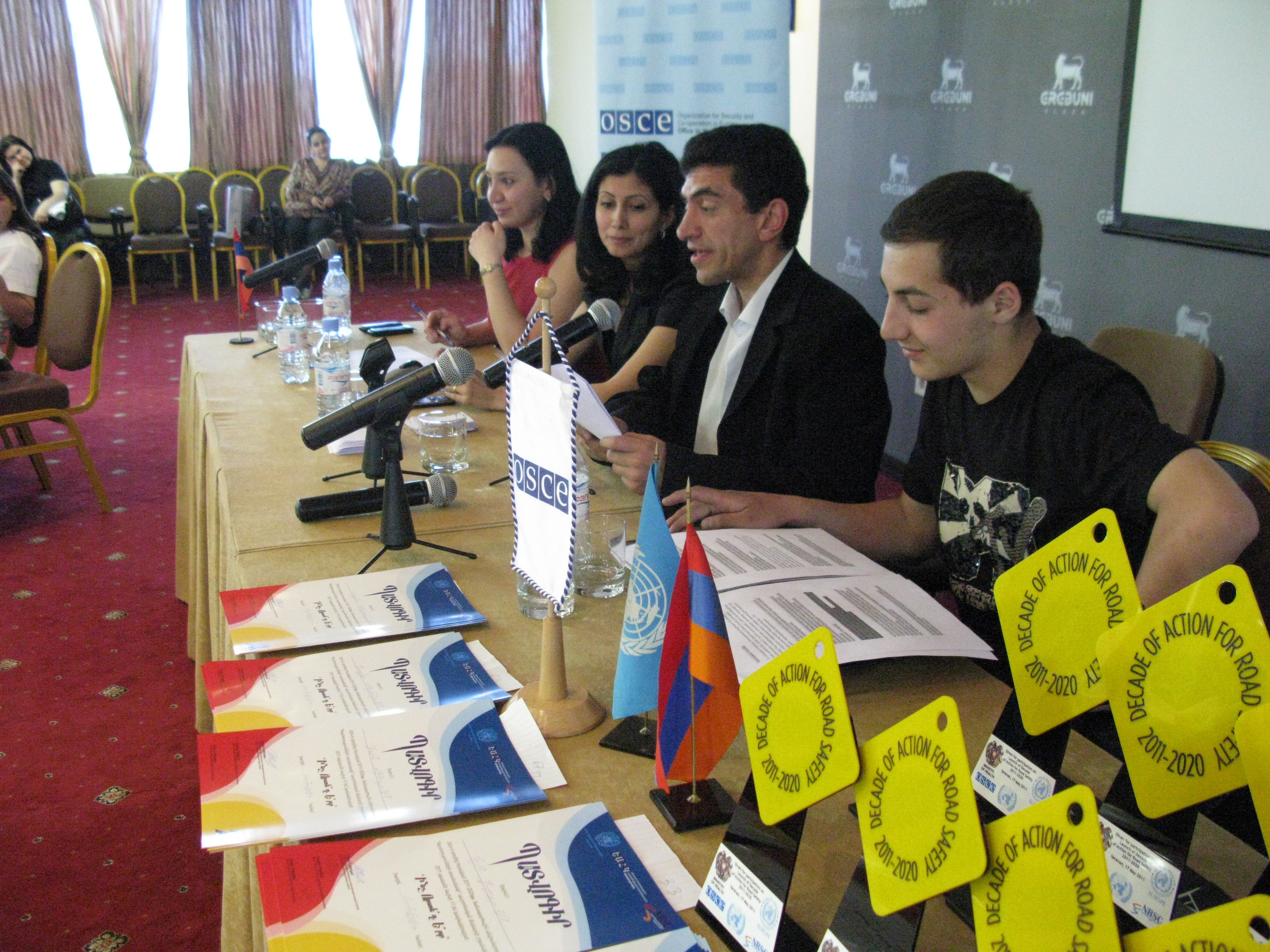 Certificates and trophies with the UN Decade of Action for Road Safety emblem, awarded to schoolchildren who participated in Road Safety Week in Armenia, organized by the OSCE Office in Yerevan, UNDPI Armenia and the National Road Safety Council, Yerevan, 17 May 2011.