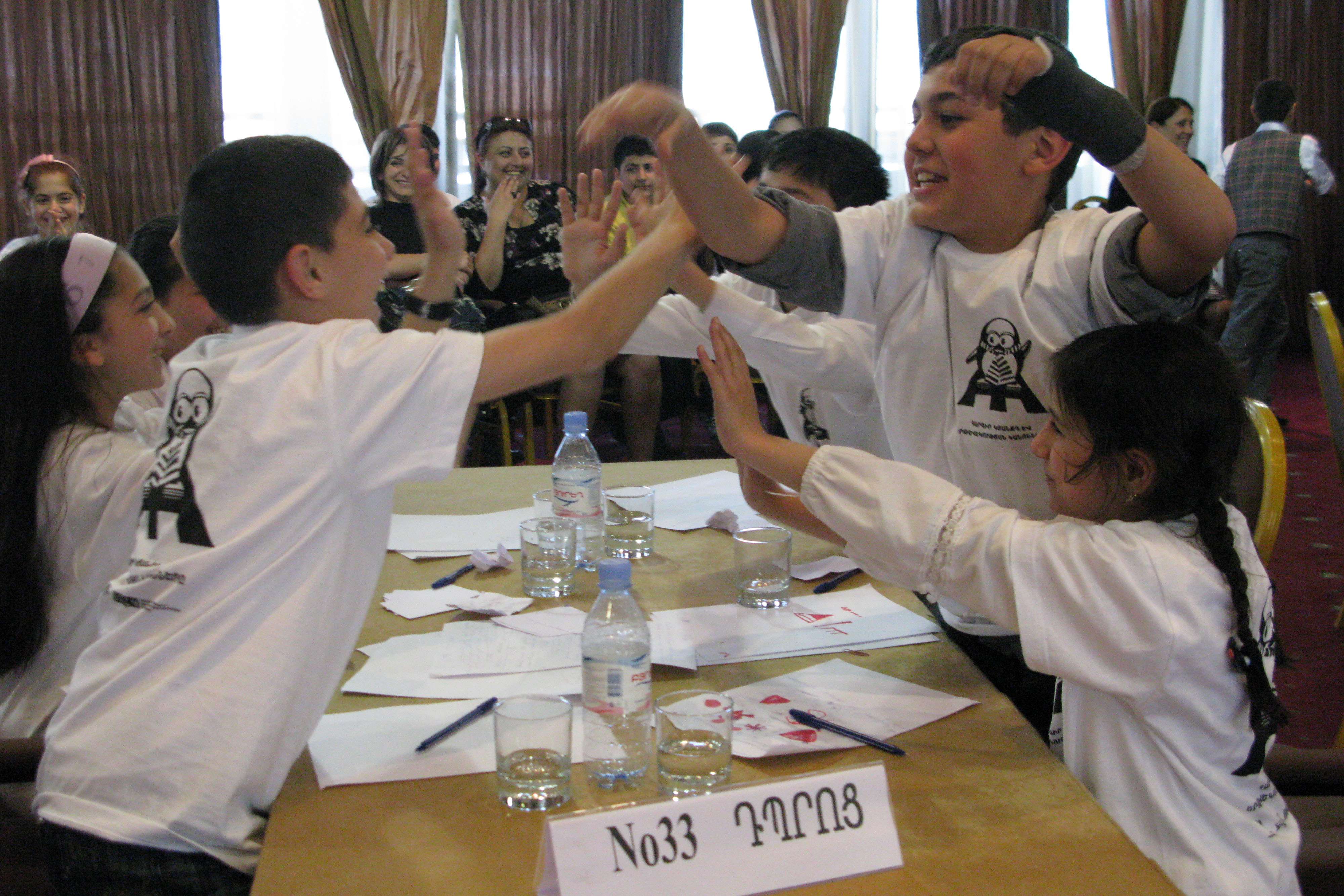 Schoolchildren playing a game during Road Safety Week in Armenia, organized by the OSCE Office in Yerevan, UNDPI Armenia and the National Road Safety Council, Yerevan, 17 May 2011.