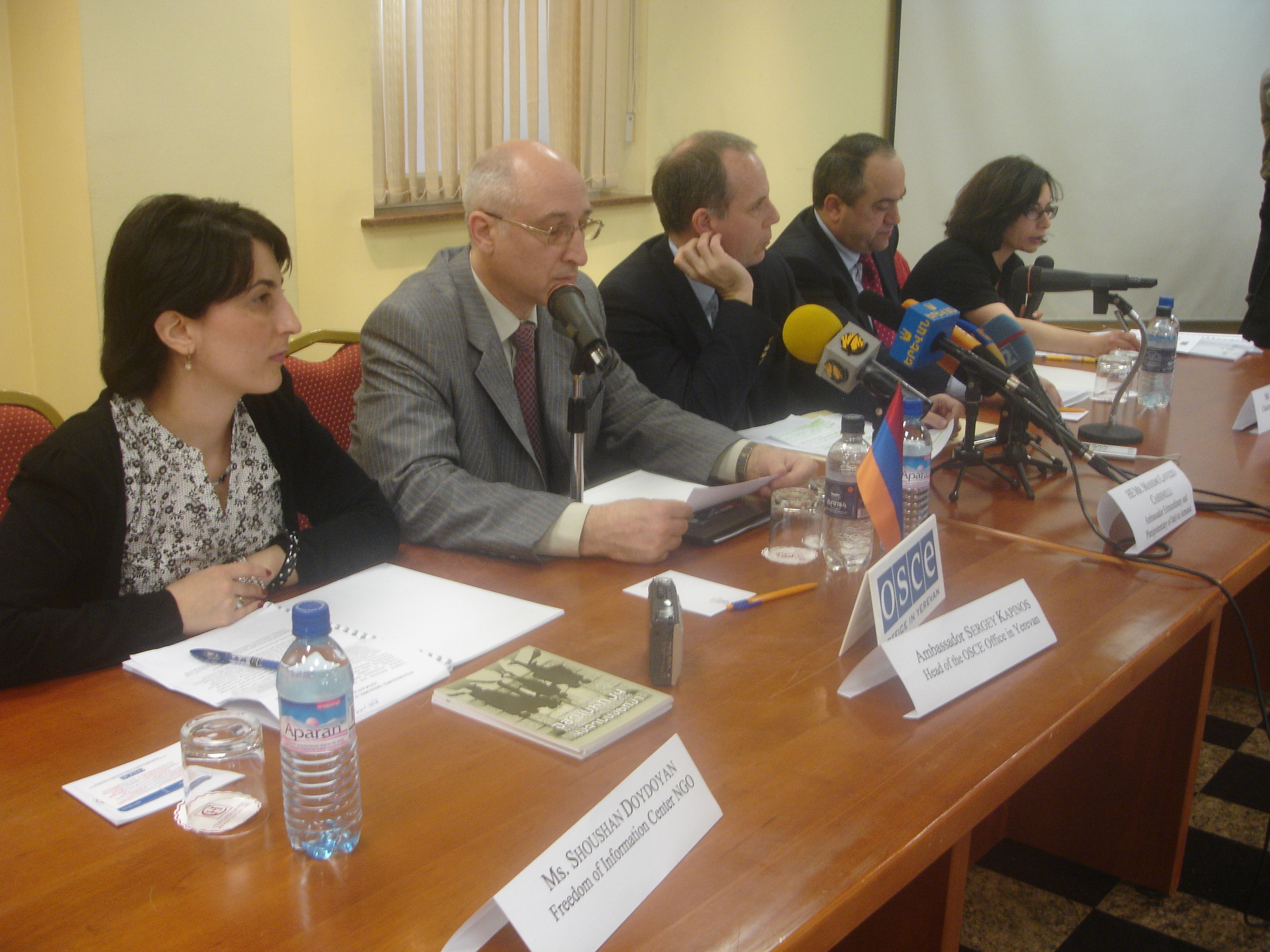Ambassador Sergey Kapinos (right), Head of the OSCE Office in Yerevan, addresses government press officers and civil servants at a freedom of information workshop for the latter, Yerevan, 28 March 2008.