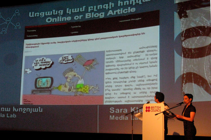 The award ceremony for the Na/Ne (S/HE) annual competition, which recognizes the promotion of gender equality in the media, organized by the OSCE Office in Yerevan in conjunction with the British Council, the British Embassy and the United Nations Population Fund, Yerevan, 10 February 2012.