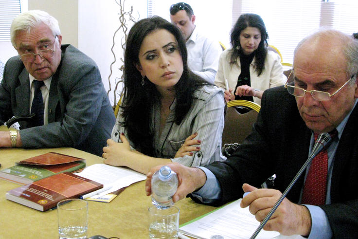 Representatives of minorities engage in discussions during a workshop on the rights of national minorities, Yerevan, 27 April 2012.