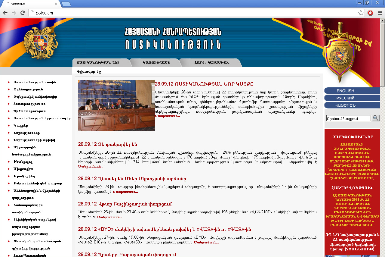 A screenshot of the new official website of the Armenian police, developed with the support of the OSCE Office in Yerevan.