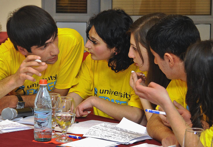 The members of the second-place team from Armenia’s Gavar region at a university debate organized by the Jinishyan Memorial Foundation with the support of the OSCE Office in Yerevan, 21 November 2012.